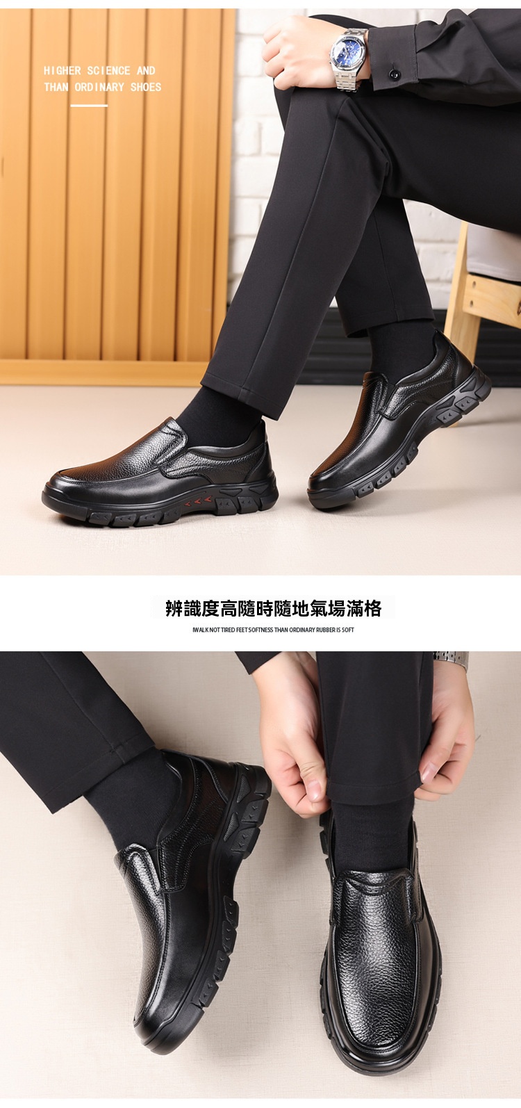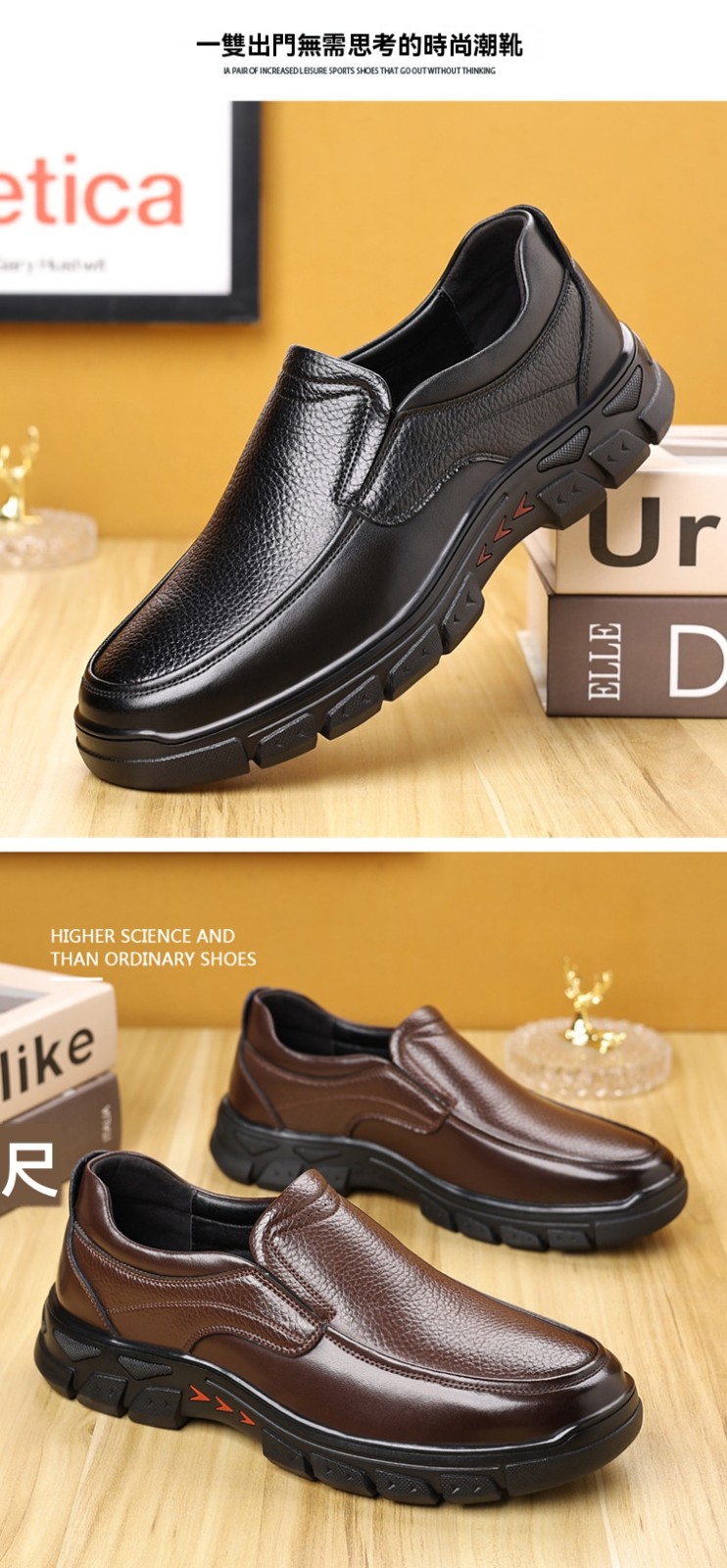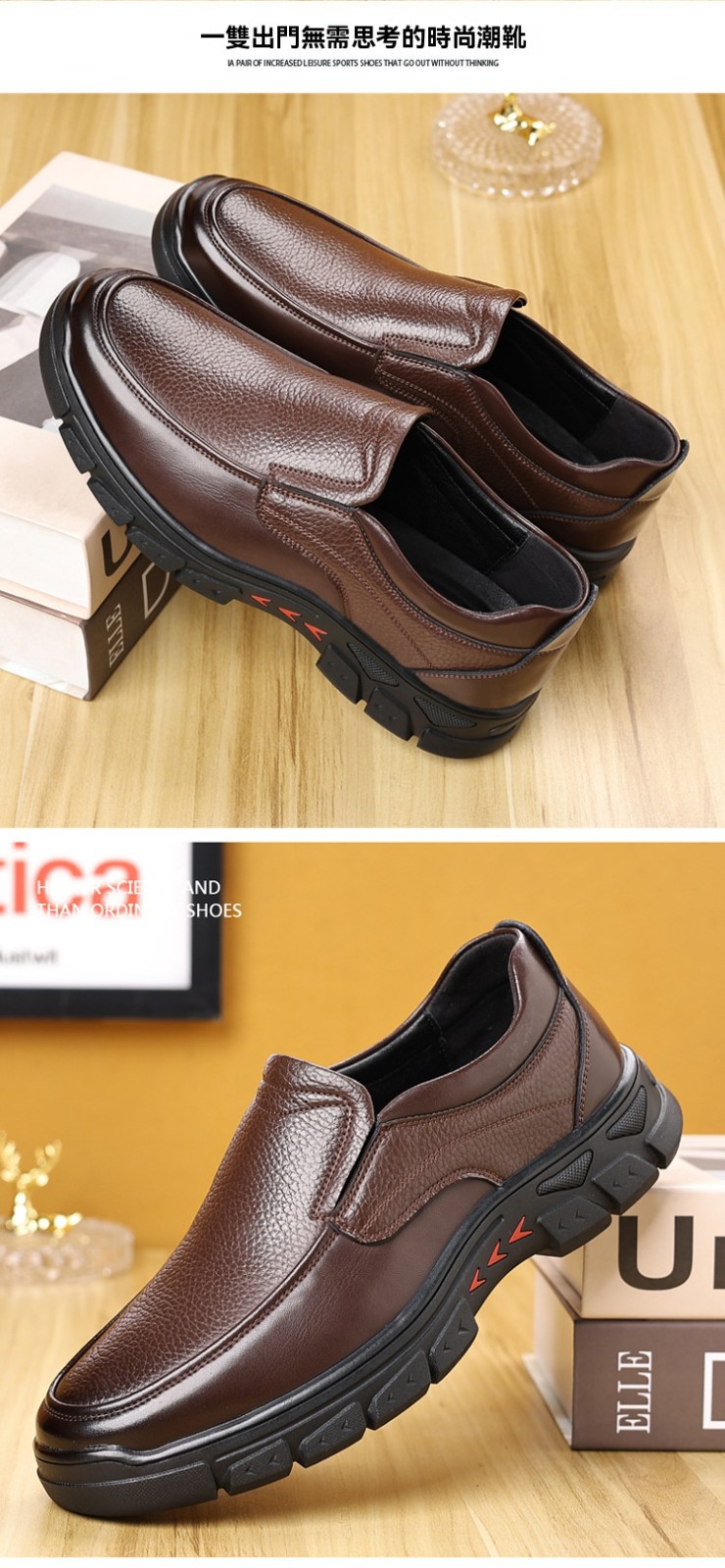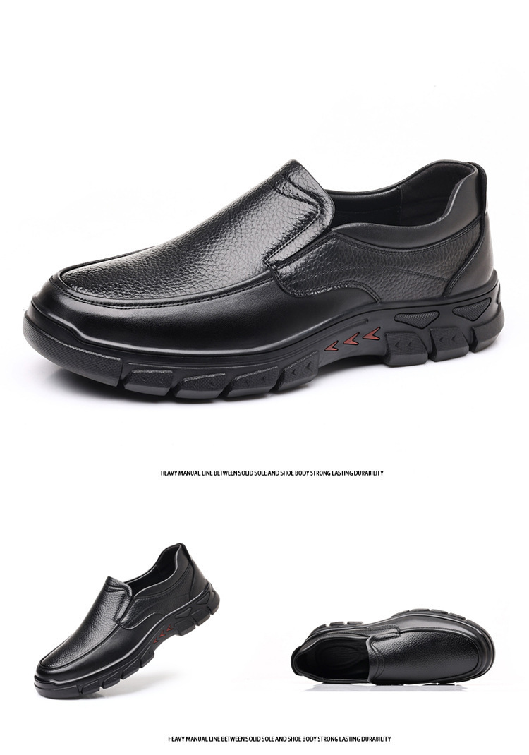 半小時前中年爸爸透氣防滑耐磨軟底休閑皮鞋【黑色+棕色】【到手兩雙】