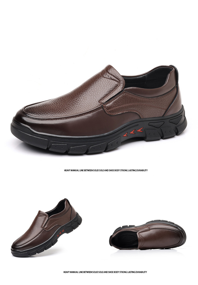 5分鐘前中年爸爸透氣防滑耐磨軟底休閑皮鞋【黑色+棕色】【到手兩雙】