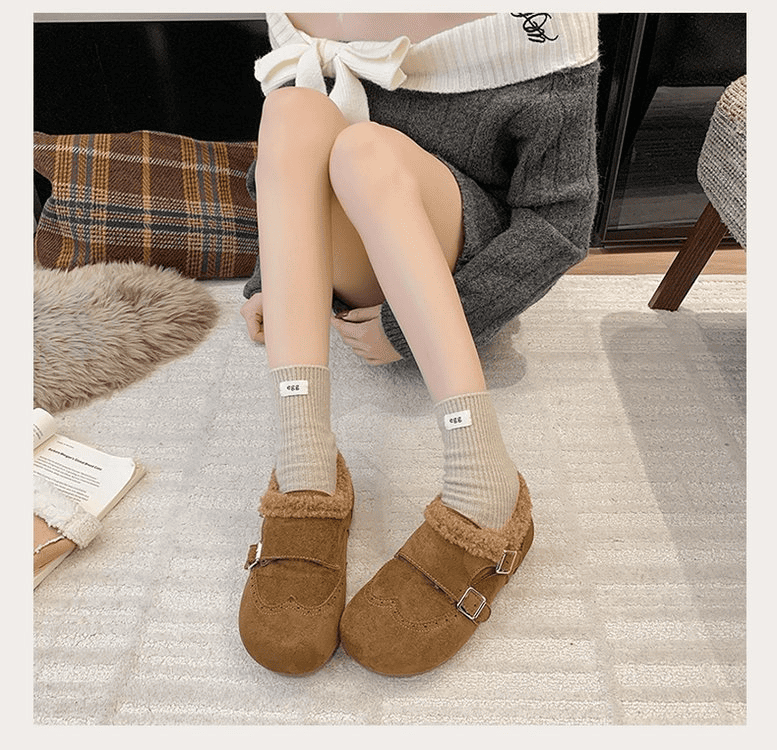 半小時前冬天不再冷!超暖和的加絨軟底豆豆鞋,防滑保暖又舒適【加絨駝色】