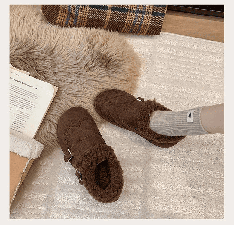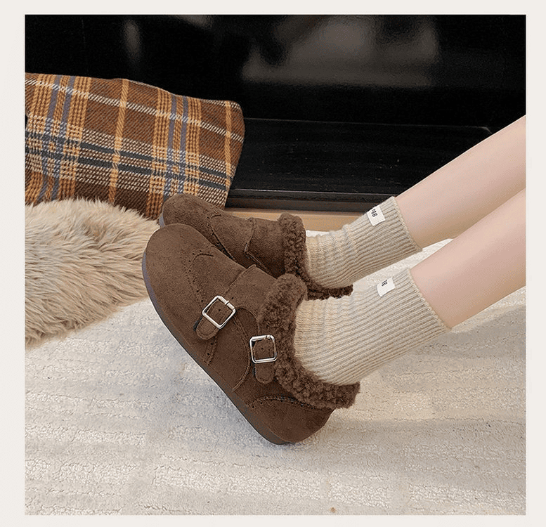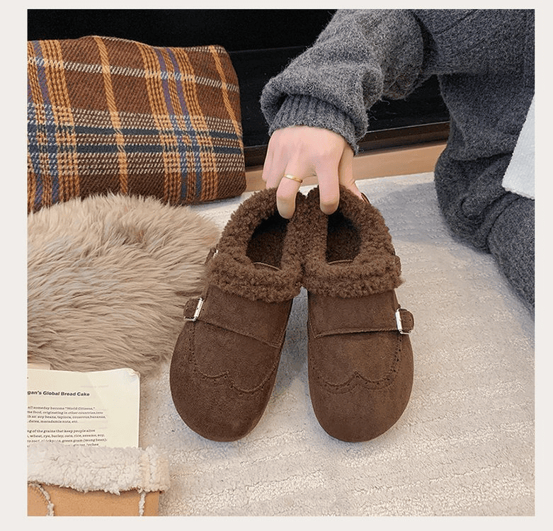 半小時前冬天不再冷!超暖和的加絨軟底豆豆鞋,防滑保暖又舒適【加絨咖啡色】
