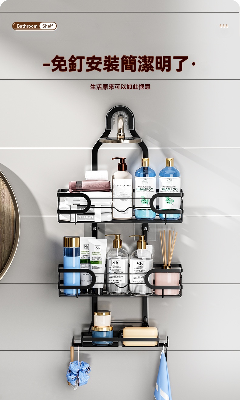 NT$1699詳情 - 浴室免打孔壁挂式輕奢廁所洗手間淋浴房收納架NT$1299
