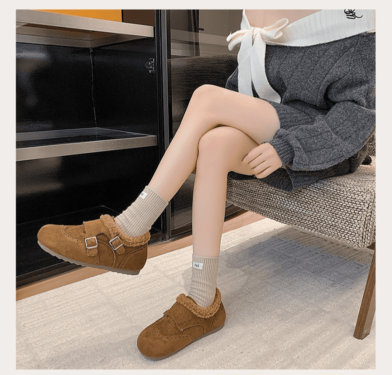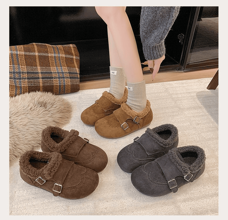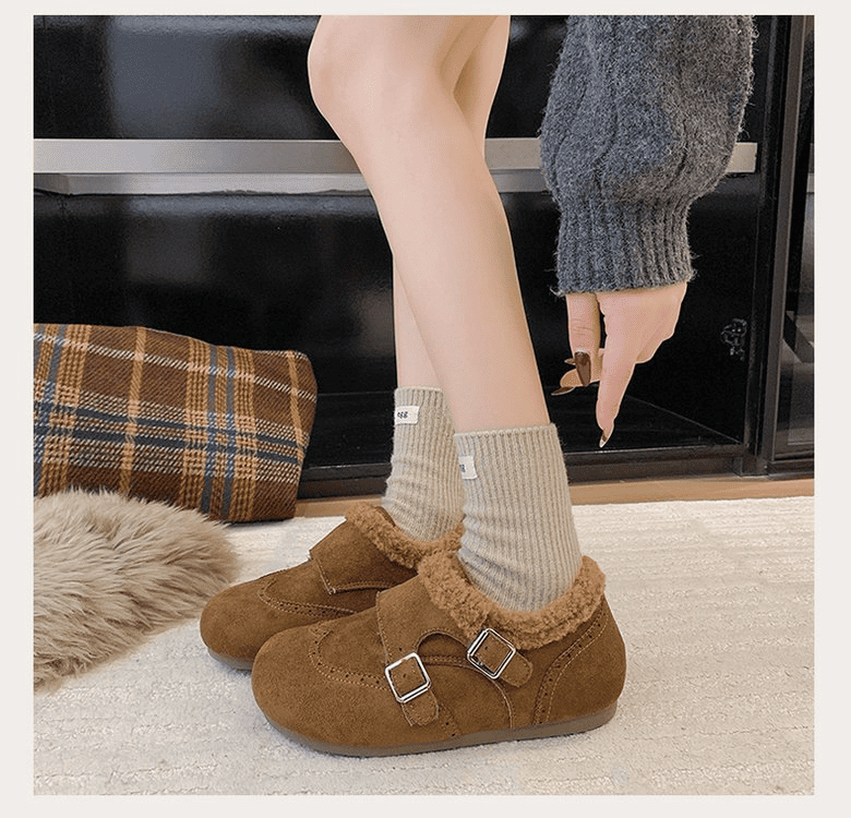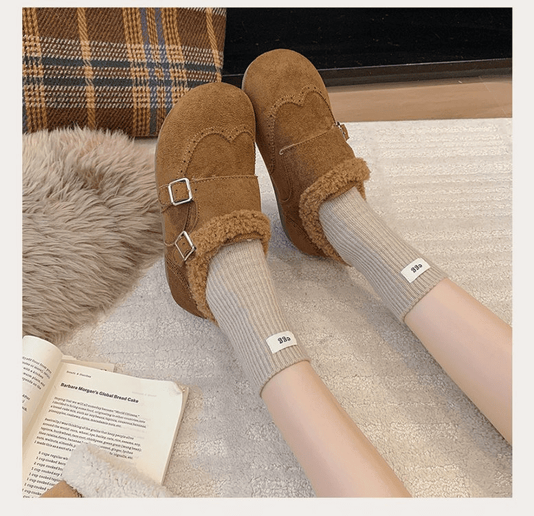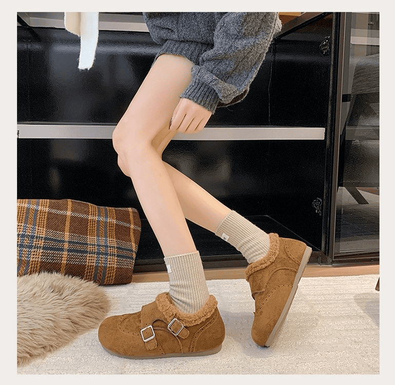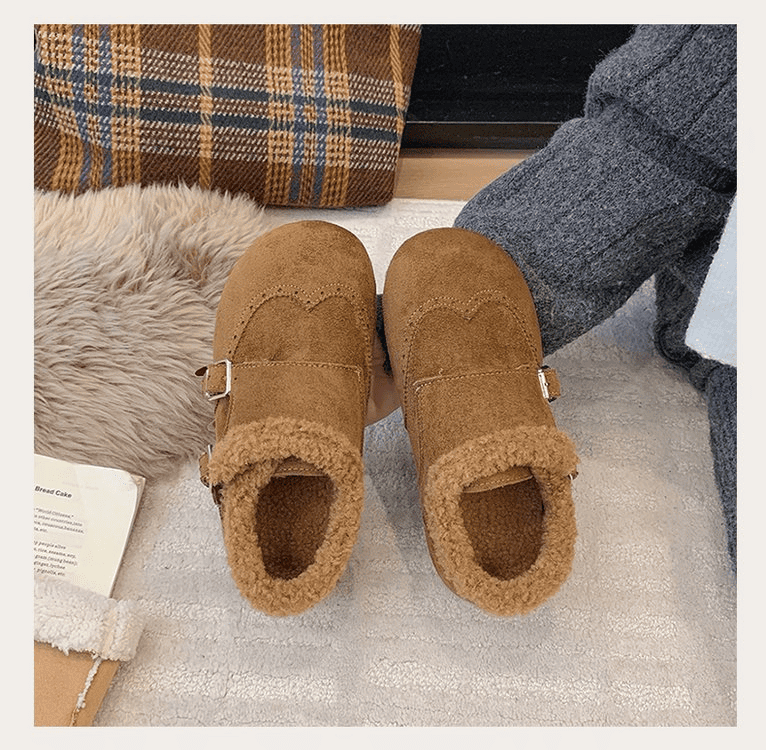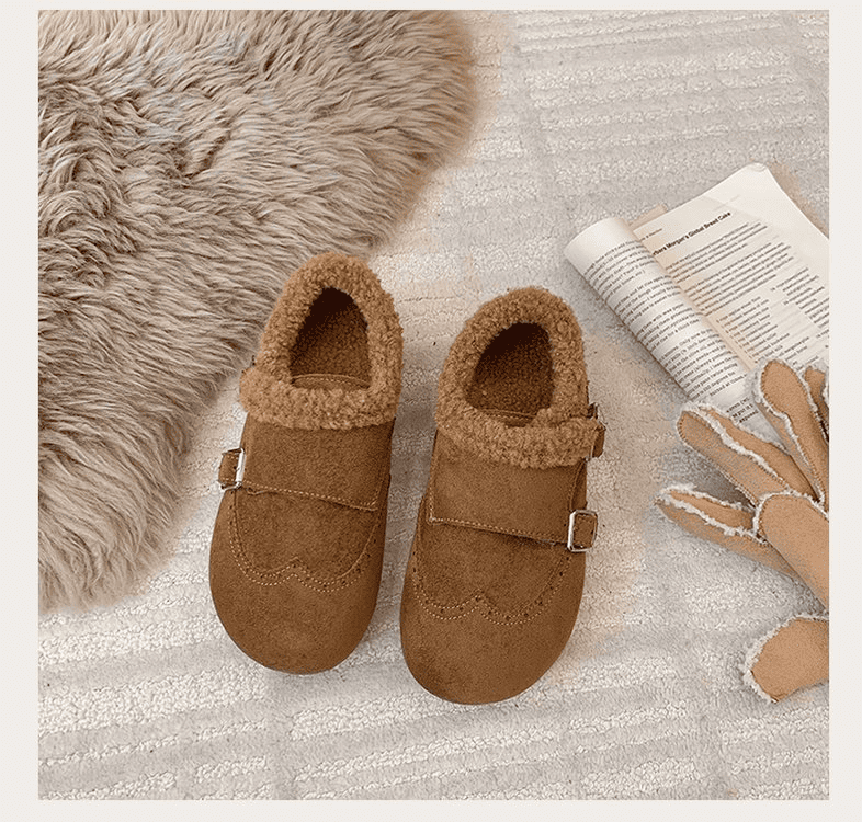 半小時前冬天不再冷!超暖和的加絨軟底豆豆鞋,防滑保暖又舒適【加絨駝色】