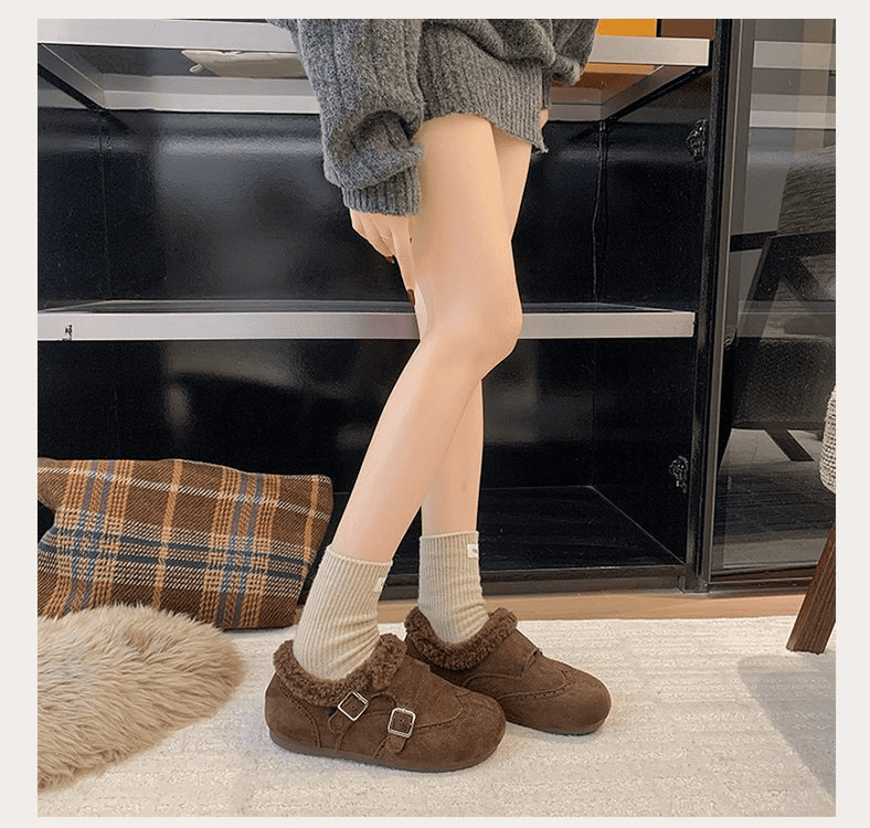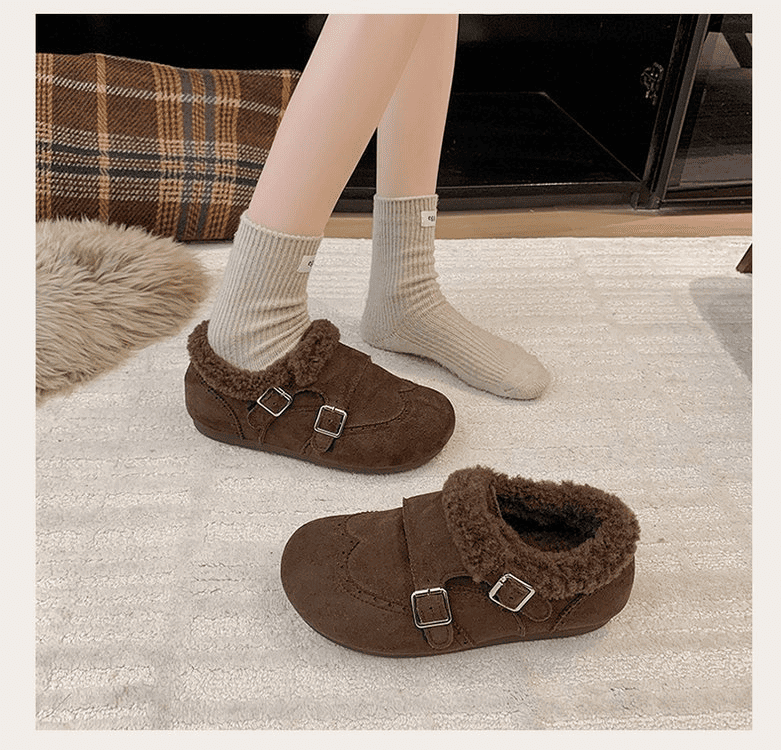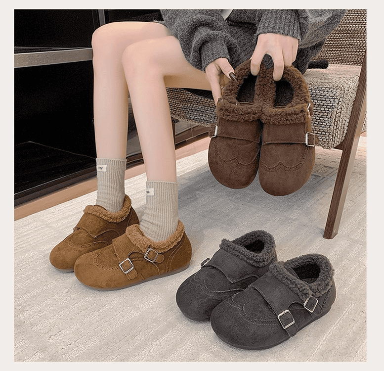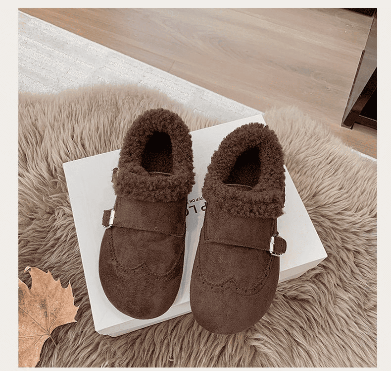 半小時前冬天不再冷!超暖和的加絨軟底豆豆鞋,防滑保暖又舒適【加絨咖啡色】