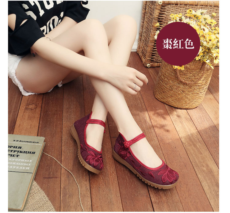 1分鐘前純手工繡花鞋【棗紅色】